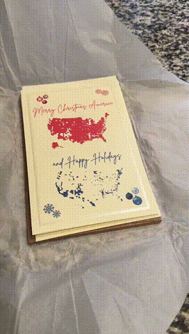 The front of the card reads "Merry Christmas America and Happy Holidays." Inside, it says, "May the next four years be merry & bright." There’s plenty of blank space inside for you to write your own message.