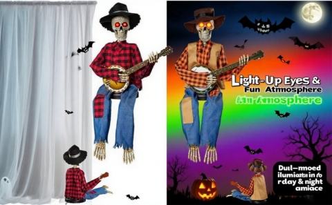 This pair of molded skeletons with unique functions will delight your guests. They come back to life with motion or sound sensing activation. They begin with some light-hearted banter, then play ‘Dueling Banjos’ music.