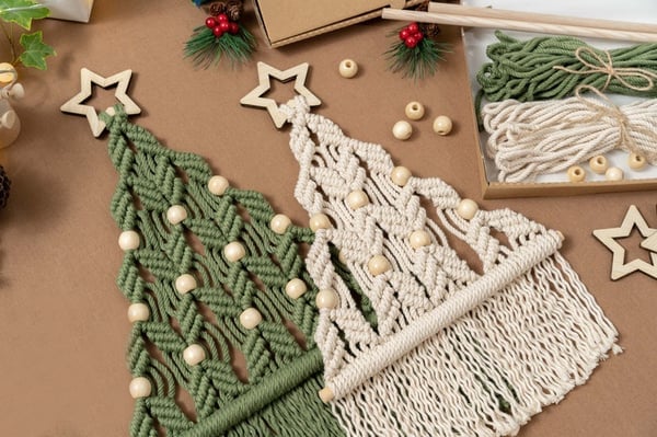 🎁PACKAGE INCLUDES1 x Christmas Tree DIY Kit (Includes 3 colors of cotton Cord + 3*Rings + 9*Beads+1*User's Manual)